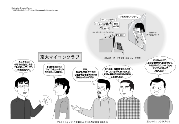 京大マイコンクラブとは 京大マイコンクラブ(Kyoto university Microcomputer Club、KMC)は、1977年に設立された、京都大学を中心として活動している京都大学旧教養部公認のコンピュータサークル。部員が興味を持ったものは何でも開発対象としている。1980年代にはPLANET、DoGA CGA System、1990年代には386BSD(98)、Linux/98、SKK95、最近ではAnthy、Ruby Refactoring Browserなど著名なソフトウェアを生み出した。 http://www.kmc.gr.jp/ |